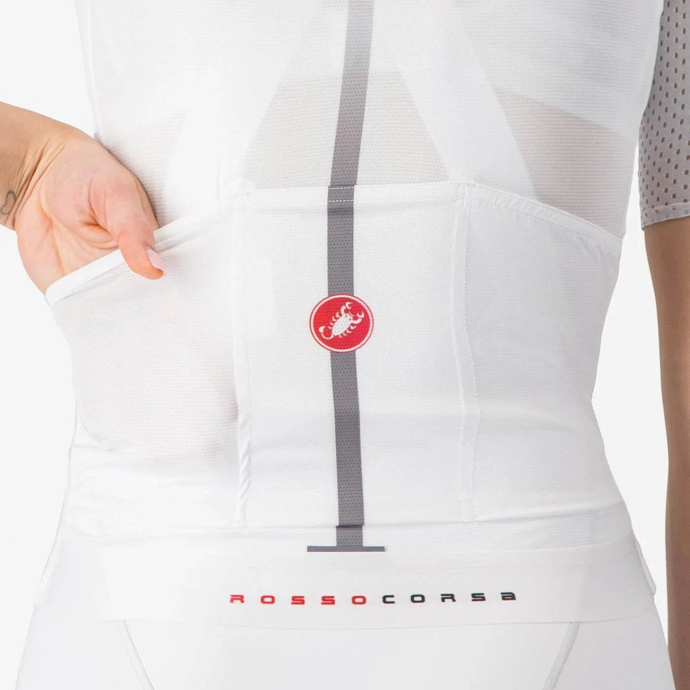 De Aero Pro 8S is meer dan een aerodynamisch wonder. Castelli heeft elk detail doordacht om de jersey praktisch en functioneel te maken voor lange trainingsritten en koersdagen.